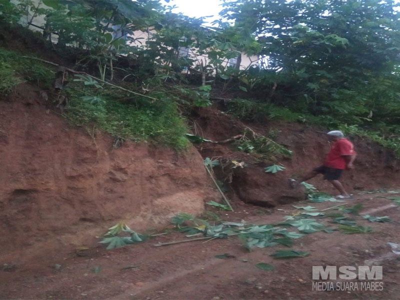 Pemerintah Desa juga melaporkan kepada instansi terkait kejadian di atas dan perlu di buatnya talud penahan tebing yang di atas rumah sementara kebutuhan mendesak bahan matrial.