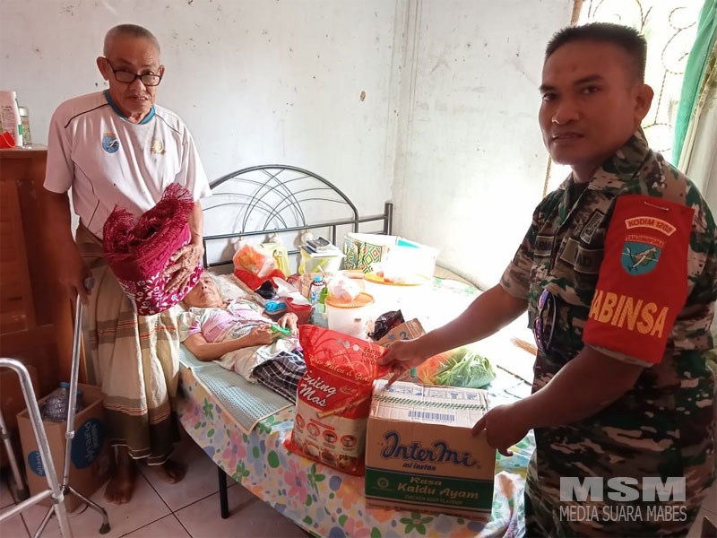 Sikapnya terasa sekali bahwa dalam darah beliau masih ada jiwa keprajuritan ketika Babinsa mendekati dan menyerahkan paket sembako di kediaman beliau. (Pendim 1202/Skw)