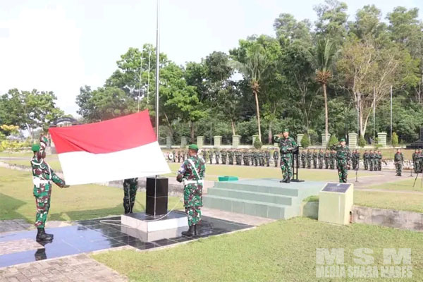 Kolonel Inf Jones Sasmita, S.I.P., M.M., sebagai Inspektur Upacara dalam kesempatan tersebut membacakan amanat Panglima TNI Laksamana TNI Yudo Margono, S.E., M.M.
