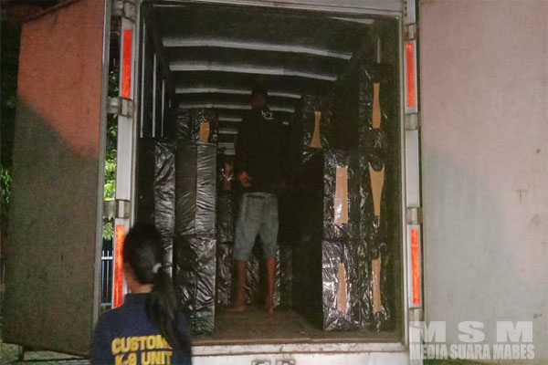 Pantauan Awak Media Mobil Box Truk Merk Dutro Warna Silver Tersebut Yang Diduga Bermuatan Rokok Ilegal Diamankan Oleh Bea Cukai terlihat Puluhan Kardus Besar di dalam mobil box tersebut, pihak Bea Cukai juga menggunakan anjing pelacak guna mengetahui hasil angkutan mobil box tersebut.