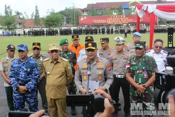 Gubernur Kalbar H. Sutarmidji menyampaikan sambutan Kapolri Jenderal Pol Drs. Listyo Sigit Prabowo, M.Si., bahwa Apel Gelar Pasukan Operasi Ketupat 2023 dilaksanakan secara serentak di seluruh Indonesia. Adapun tujuannya untuk pengecekan akhir kesiapan pelaksanaan Operasi Ketupat tahun 2023.