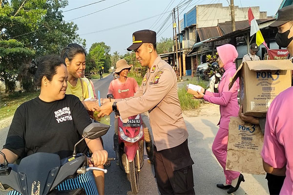MahesaMediaCenter, Singkawang Kalbar – Polsek Singkawang Timur Polres Singkawang Bersama Ibu-Ibu Pengurus Bhayangkari Ranting Singkawang Timur menggelar kegiatan Bhakti Sosial dengan membagikan takjil kepada masyarakat, kegiatan berlangsung di Jl.Raya Singkawang Bengkayang, Depan Masjid Baitul Huda Kel.Nyarumkop Kec.Singkawang Timur, Sabtu Sore (15/4/2023).