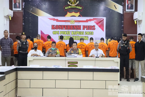MahesaMediaCenter, Ketapang – Kepolisian Resort (Polres) Ketapang Polda kalimantan Barat. menggelar kegiatan konferensi pers hasil pengungkapan kasus operasi penyakit masyarakat (Pekat) selama 14 hari dari tanggal 23 Maret sampai 5 April 2023.