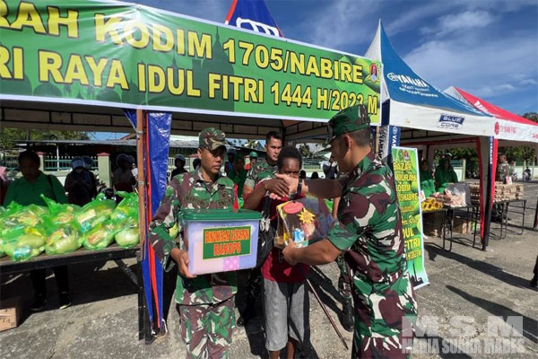 Bekerjasama dengan BRI,Pertamina,BUMN dan Bulog, kegitan ini dipimpin langsung Dandim 1705/Nabire ( Letkol Inf Doni Firmansah, M.Han. ) dan di hadiri oleh Kasdim 1705/Nabire ( Mayor Inf Al Muttaqin) dan Ibu Ibu persit serta dibantu anggota Kodim lainnya. Kegiatan ini juga bertujuan untuk membantu masyarkat di wilayah Kodim Nabire dalam menyambut Hari Raya Indul Fitri 1444 H. Bazar Murah dibuka ditandai dengan penyerahan bingkisan lebaran kepada Babinda dan paket murah kepada salah satu masyarkat.