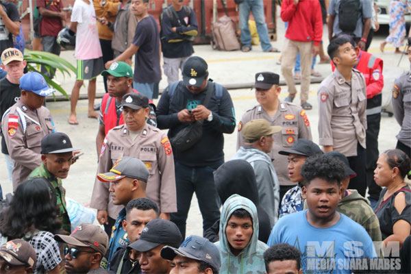 MahesaMediaCenter, Jayapura – Guna menjaga keamanan dan ketertiban di Kota Jayapura menjelang hari raya Idul Fitri 1444 Hijriah, Personel Ops Ketupat melaksanakan pengamanan arus mudik di Area Pelabuhan Jayapura, Papua, Kamis(20/4).