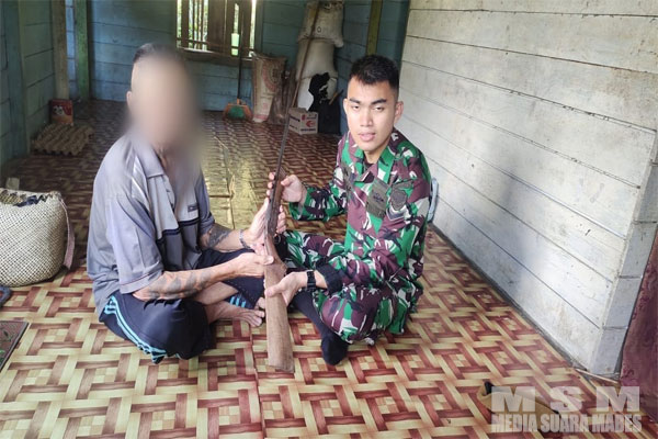 MahesaMediaCenter, Mahakam Hulu – Demi merebut simpati dan hati masyarakat di wilayah perbatasan, Personel Satgas Pamtas RI-Malaysia Yonarmed 5/105 Trk Pancagiri Pos Long Apari terus melakukan kegiatan komunikasi sosial dengan pendekatan yang humanis dan harmonis. Dari kegiatan Komsos tersebut, Satgas Pamtas Yonarmed 5/105 Trk Pancagiri kembali menerima penyerahan satu pucuk senjata api rakitan secara sukarela dari warga desa binaan yang diserahkan kepada Serda Daffa yang berlangsung di desa Noha Tivab, Kec Long Apari Kab Mahakam Ulu (24/04/2023).