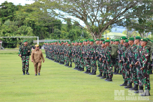 Inspektur upacara dalam sambutannya,Papua merupakan wilayah NKRI yang memiliki nilai strategis bagi kedaulatan negara dan berpengaruh terhadap aspek pertahanan, sebagaimana tercantum dalam uu RI nomor 3 tahun 2002 tentang pertahanan negara dan uu RI nomor 34 tahun 2004 tentang TNI. Oleh karenanya, diperlukan kehadiran TNI untuk menjaga kedaulatan negara, mendukung upaya pemerintah dalam percepatan pembangunan dan melindungi masyarakat di wilayah Papua,tegasnya.