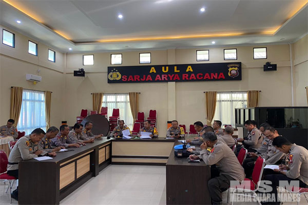 MahesaMediaCenter, Singkawang Kalbar – Kabag Ops Polres Singkawang Kompol Andri Syahroni, S.I.P., M.M. pimpin kegiatan rapat anev kegiatan Operasi Kepolisian Ketupat Kapuas 2023 di Ruang Aula Sarja Arya Racana Polres Singkawang di Jl. Firdaus H.R II Kel. Pasiran Kec. Singkawang Barat Kota Singkawang, Kamis (27-4-2023).