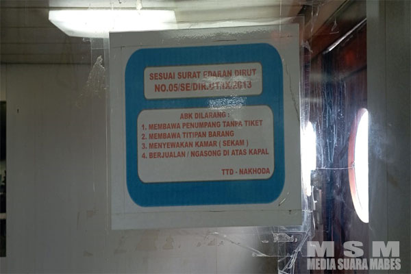 MahesaMediaCenter, Jayapura – Menyewakan kamar ABK merupakan praktek yang tidak sesuai dengan Peraturan Dinas Awak Kapal Pelni (Persero) Pasal 51 dimana salah satu poinnya menyatakan bahwa menyewakan kamar akan dikenakan sanksi tegas sesuai peraturan yang berlaku.
