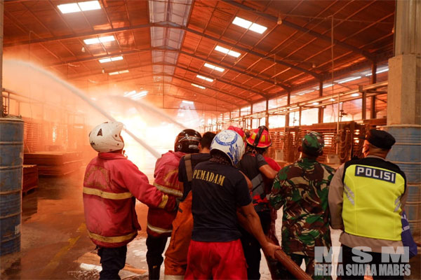 MahesaMediaCenter, Batang – Pabrik kayu lapis PT Java Wood Indonesia (JWI) yang berlokasi di Kecamatan Banyuputih, Kabupaten Batang, mengalami kebakaran pada pagi hari Minggu (30/4/2023). Hingga pukul 11.45 WIB, sejumlah personel TNI Polri membantu tim pemadam kebakaran berusaha memadamkan api yang masih terlihat.