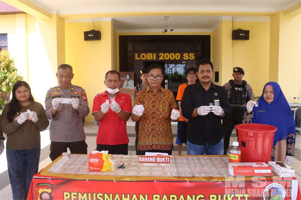 “Adapun proses pemusnahan barang bukti narkotika dilakukan dengan cara, barang bukti narkotika jenis sabu tersebut setelah dibuka dari segel dan diambil sebagian untuk dilakukan pengetesan dengan menggunakan TestKit dan didapatkan hasil posiitif mengandung Methaphetamin,” ujarnya.
