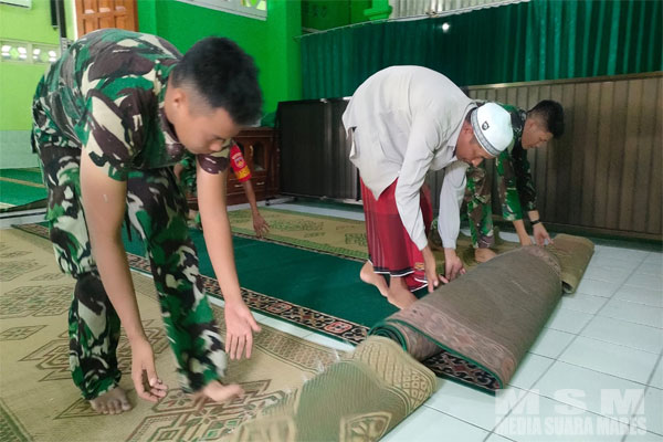 Siang ini Jum’at (12/05/202) terlihat Anggota Satgas TMMD bersama-sama dengan warga masyarakat begitu kompak membantu penyiapan ibadah sholat jum’at diantaranya dengan membersihkan karpet dan juga tempat wudhu.
