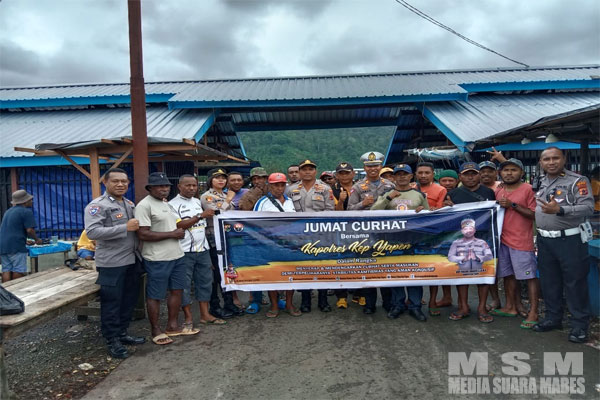 MahesaMediaCenter, Yapen – Dalam mendapatkan berbagai keluh kesah masyarakat dengan tujuan tetap menjaga kamtibmas, Polri terus melaksanakan kegiatan jumat curhat seperti di lakukan oleh Polsek Kepulauan Yapen Polda Papua yang mana menyikapi yang terjadi beberapa waktu lalu dimana terjadinya pemalangan di pasar aroro iroro serui oleh keluarga pemilik hak ulayat tanah, maka di lakukan jumat curhat bersama masyarakat yang melakukan aktifitas jual-beli di pasar ikan aroro iroro serui. Jumat (19/5/2023).