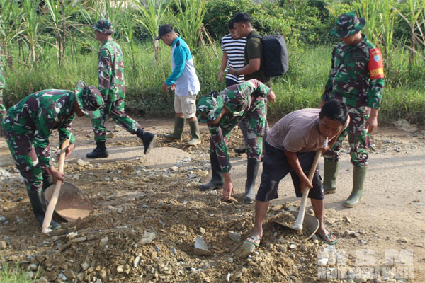 Tentunya tujuan dari pada kegiatan karya bakti ini adalah kita membantu pemerintahan daerah dalam rangka mengatasi kesulitan rakyat, sehingga dengan karya bakti bersama rakyat, maka diharapkan akan tercipta ikatan batin yang kokoh kuat TNI dengan masyarakat, tutup Dandim 1202/Skw.