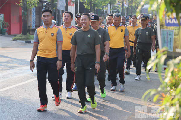 MahesaMediaCenter, Demak – Polres Demak menggelar olahraga bersama dalam rangka meningkatkan sinergitas antara TNI dan Polri untuk mewujudkan kondusifitas keamanan dalam negeri mengawal tahun politik 2024.