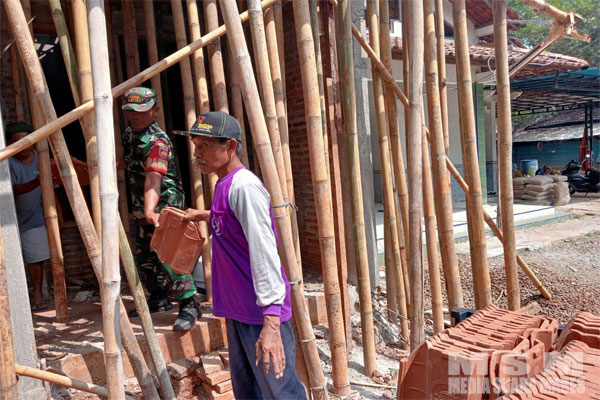 Dalam kerja bakti tersebut Babinsa Serda Ahmad Rofiq bersama warga saling bergotong-royong dengan mengangkut material genteng secara estafet hal itu dilakukan untuk meringankan beban suatu pekerjaan serta sebagai wujud kekompakkan.