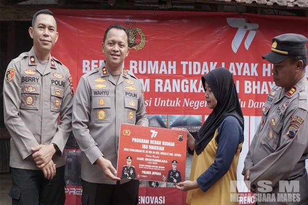 MahesaMediaCenter, Jepara – Polres Jepara Polda Jateng, memberikan bantuan sosial berupa bedah rumah terhadap kediaman Ibu Warsiah. Tepatnya di Desa Pekalongan, Kecamatan Batealit. Kegiatan pemberian bantuan sosial itu bagian dari rangkaian memperingati Hari Bhayangkara ke 77 tahun 2023.