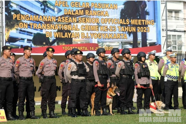 MahesaMediaCenter, DIY – Kapolda DIY Irjen Pol Suwondo Nainggolan, S.I.K., M.H. memimpin Apel Gelar Pasukan Dalam Rangka Pengamanan Asean Senior Officials Meeting on Transnational Crime (SOMTC) Ke-23 Tahun 2023, Rabu 14 Juni 2023.