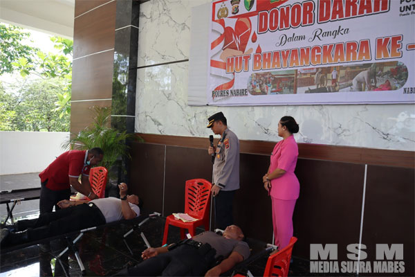 Kapolres AKBP Ketut dalam penyampaiannya mengatakan saat ini Polres Nabire bekerjasama dengan UTD Rumah Sakit Umum Nabire melaksanakan Bakti Kesehatan Donor darah dalam rangka menyambut Hari Bhayangkara Ke-77 sebagai bentuk kepedulian Polri terhadap sesama khususnya untuk membantu warga masyarakat yang membutuhkan darah.