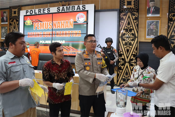 Pada kesempatan yang sama dilakukan pemusnahan Barang bukti Sabu dengan disaksikan oleh Kejaksaan Negeri Sambas, Dinas Kesehatan Sambas, PJU Polres Sambas, Penyidik dan awak media.