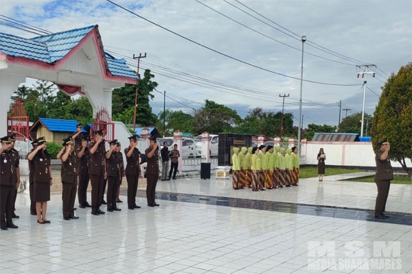 Kepala Kejaksaan Negeri Nabire Yedivia Rum, S.H,. M.H bertindak selaku Inspektur Upacara di sambut oleh Perwira Upacara Azhari Setya S.H yang juga selaku Jaksa Fungsional pada Kejaksaan Negeri Nabire.