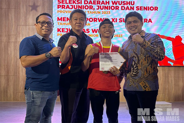 MahesaMediaCenter, Pekanbaru – Erison Yeremia Hutagaol atlet junior wushu indonesia kelas 52 kg meraih medali emas di Selekda Riau 2023 yang dilaksanakan pada tanggal 21-23 Juli 2023 bertempat di Sekolah Dharma Yuda kota Pekanbaru.