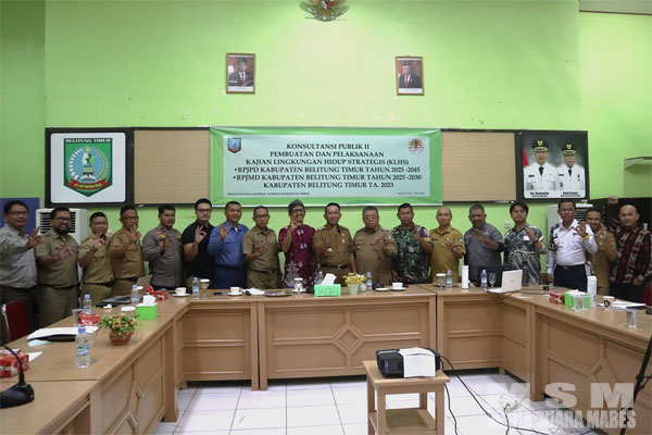 MahesaMediaCenter, Beltim – Dinas Lingkungan Hidup Kabupaten Belitung Timur menggelar Konsultasi Publik II: Pembuatan dan Pelaksanaan Rekomendasi Kajian Lingkungan Hidup Strategis untuk Rencana Pembangunan Jangka Menengah Daerah (RPJMD) dan Rencana Pembangunan Jangka Panjang Daerah (RPJPD) di Ruang Rapat Gunung Lumut Badan Perencanaan Pembangunan, Penelitian dan Pengembangan Daerah Kabupaten Beltim, Selasa (25/7/23).