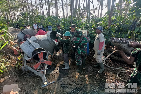 Danramil 08/Keling selaku Dan SST, Kapten Inf Sumidi menuturkan dalam pekerjaan jalan anggota Satgas TMMD dan warga terus mengebut proses pengerjaan pengecoran jalan guna bisa selesai tepat waktu yang telah ditentukan.