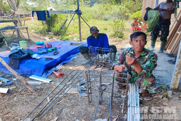 Menurut Serda Sunarko anggota Satgas TMMD ke-117 bersama warga mumpung masih pagi walaupun gerimis tetap dengan senang dan serius merakit ram besi karena akan segera digunakan untuk pengecoran slop tiang atas nantinya.