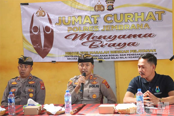 Kapolres Jembrana AKBP Dewa Gde Juliana, S.H., S.I.K., M.I.K. pada kesempatan tersebut juga mengucapkan terima kasih kepada seluruh undangan yang telah hadir atas waktu dan pelaksanaan kegiatan Jum’at Curhat Menyame Braya yang dilaksanakan pada hari ini di Desa Banyubiru, yang mana kegiatan Jum’at Curhat adalah merupakan kegiatan rutin yang dilaksanakan Polres Jembrana.
