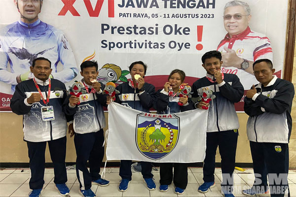 “Hingga kini Jepara dari cabang olahraga Muanthay meraih 1 emas yaitu tunggal putri atas nama Siti Zulfika berasal dari Kelet dan 3 Perunggu terdiri dari 1 Perunggu putri bernama Tya Aiaya Isna berasal dari Bangsri, sedangkan 2 Perunggu dari putra atas nama Ahmad Dani Hidayat asal Desa Kecapi dan satunya atas nama Sayyid Ali Asadullah asal Bangsri,” tambahnya Harno (sapaan akrabnya).