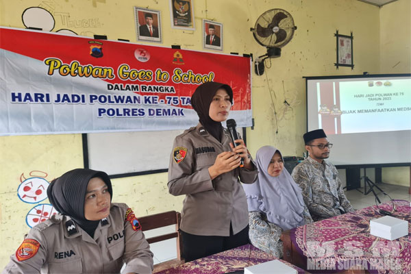 Di tempat terpisah, Kapolres Demak AKBP Muhammad Purbaya menjelaskan, Polwan Goes to School itu sendiri dilakukan sebagai bentuk semangat para Polwan dalam rangka menyambut Hari Jadinya yang ke-75.