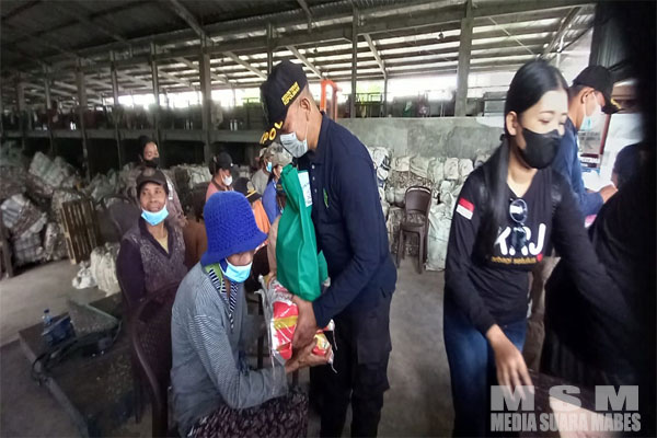 Paket sembako itu dibagikan kepada para pemilah sampah mandiri di TPA Peh, Desa Kaliakah, Kecamatan Negara.