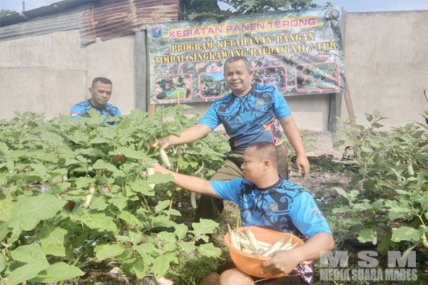 MahesaMediaCenter, Katim Pal Singkawang – Kapten Cpl Dedi Supriadi bersama petani dan warga binaan memanen Terong hasil bercocok tanam di lahan Timpal Skw Paldam XII/Tpr, berada di Jalan Pahlawan,Kelurahan roban, Kecamatan Singkawang tengah,