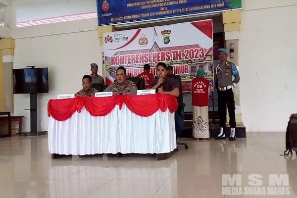 MahesaMediaCenter, Babel – Kegiatan konferensi pers yang berlangsung di Aula Graha Patriatma Polres Beltim itu, dipimpin langsung oleh Waka Polres Beltim, Kompol Poltak Purba dan Kasat Reskrim AKP Wawan, serta Kasie Humas Polres Beltim. Kasat Reskrim Polres Beltim “mengatakan terkait penindakan tambang tanpa izin yang dilakukan Satreskrim setiap tahun ada pelaksanaan razia.