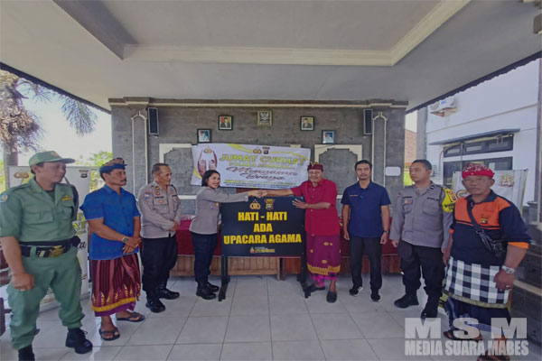 Sebagai bagian dari rangkaian acara, Kasat Binmas Polres Jembrana juga menyerahkan sarkon berupa baju kaos pecalang mitra Polri dan plang tanda upacara kepada pihak terkait. Acara berlangsung dengan lancar dan aman, berakhir pada pukul 11.30 WlTA.
