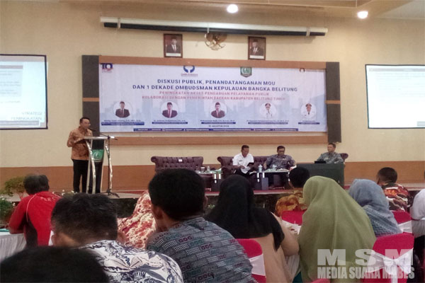 Timur. Hadir dalam diskusi anggota Ombudsman RI, Johanes Widjantoro, Penjabat Gubernur Kepulauan Bangka Belitung, Suganda Pandapotan Pasaribu, Bupati Belitung Timur, Burhanudin dan Ketua Ombudsman Bangka Belitung, Shulby Yozar Ariadhy, LSM dan Ormas. Jumat (25/08/2033).