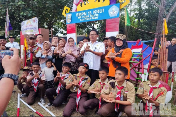 Selanjutnya Kepala sekolah SMP Negeri 13 Krui Dewi Peberwati S,Pd, mengucapkan terima kasih kepada bupati Pesisir Barat dan Hj Septi Istilal selaku ketua Kwartir Cabang Pesisir Barat yang telah sempat berkunjung di STAN bumi perkemahan SMP N 13 Krui