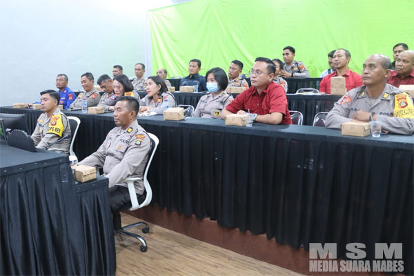 Materi dari Karobinops SOPS Polri, Brigjen Pol. Auliansyah Lubis, S.I.K., M.H., membahas agenda nasional dan internasional, serta strategi Polri dalam menghadapi pemilu 2024. Kegiatan berakhir dengan sesi foto bersama dan penyerahan cinderamata.