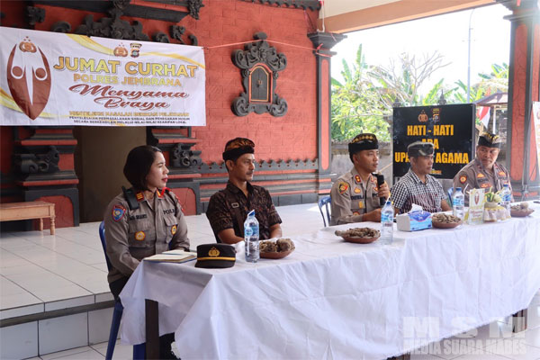 MahesaMediaCenter, Jembrana Bali – Kapolres Jembrana, AKBP I Dewa Gde Juliana S.I.K.,S.H.,M.I.K., memimpin dengan sukses acara “Menyame Braya atau Jum’at Curhat” yang berlangsung di Balai Banjar Desa Adat Loka Sari, Loloan Timur. Acara ini turut melibatkan sejumlah tokoh adat, Linmas, serta Pecalang Desa Adat Pendem, menjadi sebuah forum yang memberikan kontribusi positif bagi situasi Kamtibmas di Kabupaten Jembrana dan seluruh wilayah Bali, Jum’at (22/09/2023).