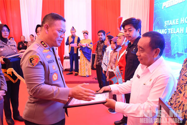 Acara tersebut dirangkaikan dengan pemberian penghargaan kepada stakeholder yang berkontribusi dalam menciptakan situasi Kamseltibcar lantas aman dan lancar.