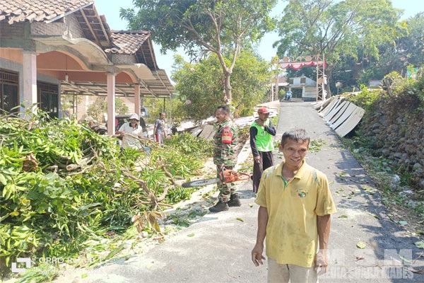 Babinsa Serda Heri menyampaikan kerja bakti dengan pemotongan ranting-ranting maupun dahan yang tinggi untuk mengurangi hal-hal yang tidak diinginkan terlebih ketika angin bertiup kencang.