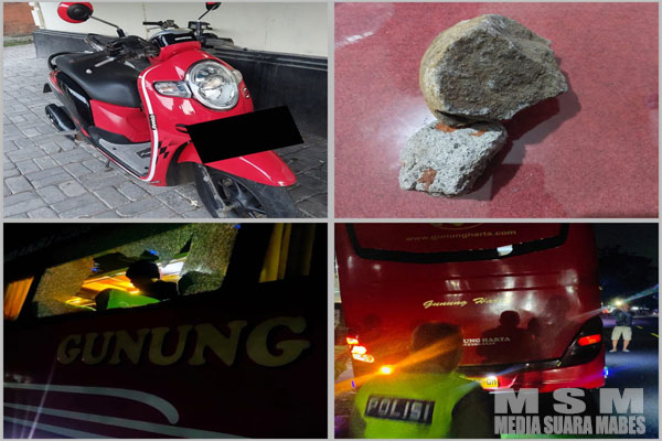 Laporan tentang pelemparan bus ini diajukan oleh Hasan, seorang sopir bus Gunung Harta. Tim Opsnal Polsek Mendoyo sedang melaksanakan patroli antisipasi pelemparan kaca kendaraan di wilayah tersebut, sehingga mereka dapat merespons dengan cepat saat insiden terjadi.