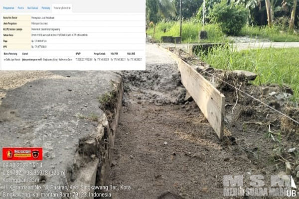 MahesaMediaCenter, Singkawang Kalbar – Pemerintah Kota Singkawang pada tahun 2023 telah merealisasikan anggaran APBD (DAU) yang cukup besar, untuk peningkatan pembangunan jalan di wilayah kota singkawang Melalui dinas pekerjaan umum dan penataan ruang perumahan rakyat dan kawasan permukiman, Minggu (4/10/2023).