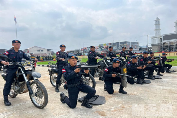 Brimob Kalbar dengan Latihan Siap Amankan Aksi Unjuk Rasa Dilapangangan
