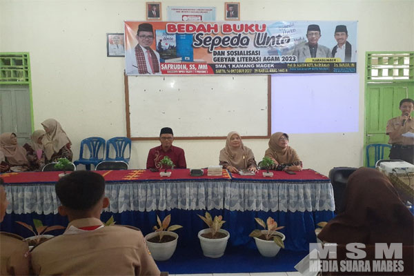 MahesaMediaCenter, Kamang Magek Agam – Lebih kurang 300 siswa dan majelis Guru SMA Negeri 1 Kamang Magek mengikuti Motivasi Bedah Buku Sepeda Unto dalam rangka sekaligus mensosialisasikan Gebyar Literasi Agam 2023, saking antusiasnya para siswa sampai membludak ke luar ruangan.