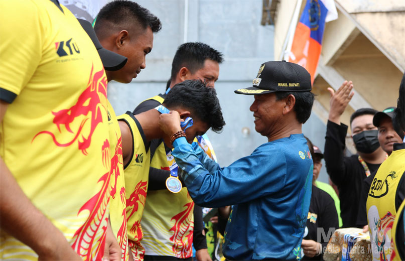 Wabup mengucapkan selamat kepada tim yang meraih juara,kepada tim yang belum berhasil untuk tidak putus asa dan terus berlatih serta berusaha dengan dedikasi yang tinggi untuk mencapainya di event yang akan datang.