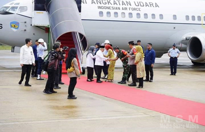 MahesaMediaCenter, Palangka Raya – Pangdam XII/Tanjungpura Mayjen TNI Iwan Setiawan, S.E., M.M., menyambut kedatangan Wakil Presiden RI Prof. Dr. (H.C.) K. H. Ma’ruf Amin dan Ibu Hj. Wury Estu Ma’ruf Amin beserta rombongan di Bandara Tjilik Riwut, Kota Palangka Raya, Kalimantan Tengah.