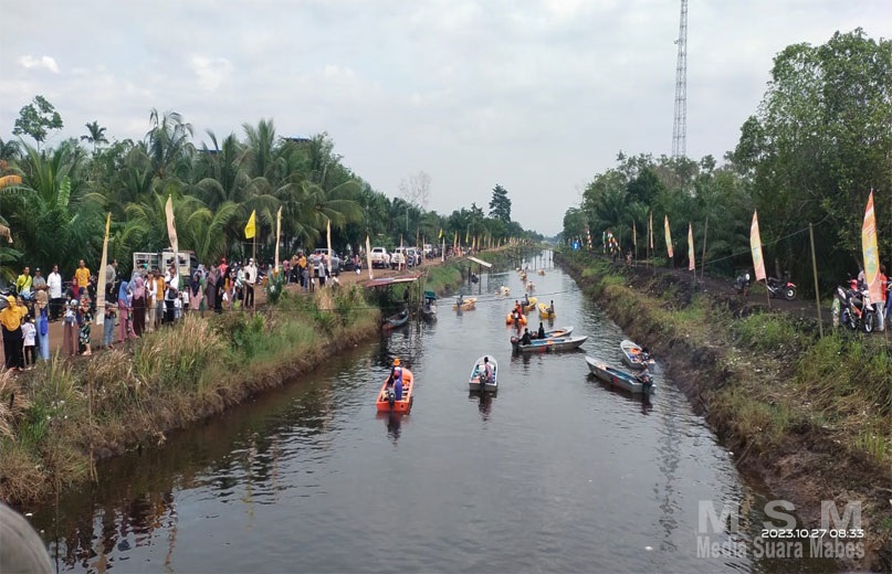 Usai melepas speedboat dan motor kato berlayar menuju dermaga Makam Pangeran Iranata, selanjutnya rombongan Bupati Menuju Simpang Empat Desa Sungai Pelang.