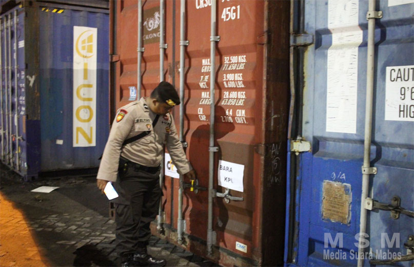 MahesaMediaCenter, Pontianak Kalbar – Logistik Pemilu 2024 tiba di Pelabuhan Umum Swasta PT. Indo Container Line Jalan Kom Yos Sudarso, Kota Pontianak, Kalimantan Barat pada Kamis malam (26/10). Aparat Kepolisian dari Polda Kalbar dan Polresta Pontianak yang tergabung dalam Operasi Mantap Brata Kapuas 2023-2024 melakukan pengamanan secara ketat proses pembongkaran dan pergeseran logistik pemilu tersebut.